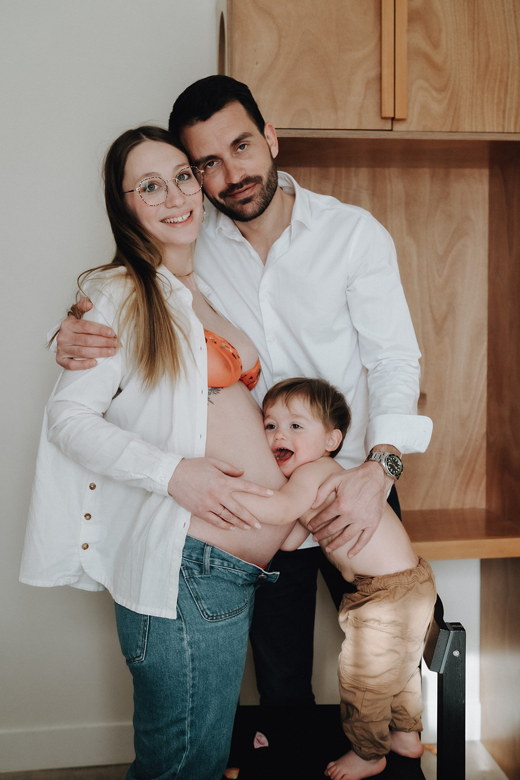 Si vous souhaitez faire des photos de grossesse entourée des personnes qui partagent votre vie, petits et grands peuvent se joindre à la fête pour une séance collective. Dans la même lignée du shooting grossesse, je vous propose d’organiser un shooting de couple ou un shooting de famille à vos côtés, autour de votre ventre arrondi.